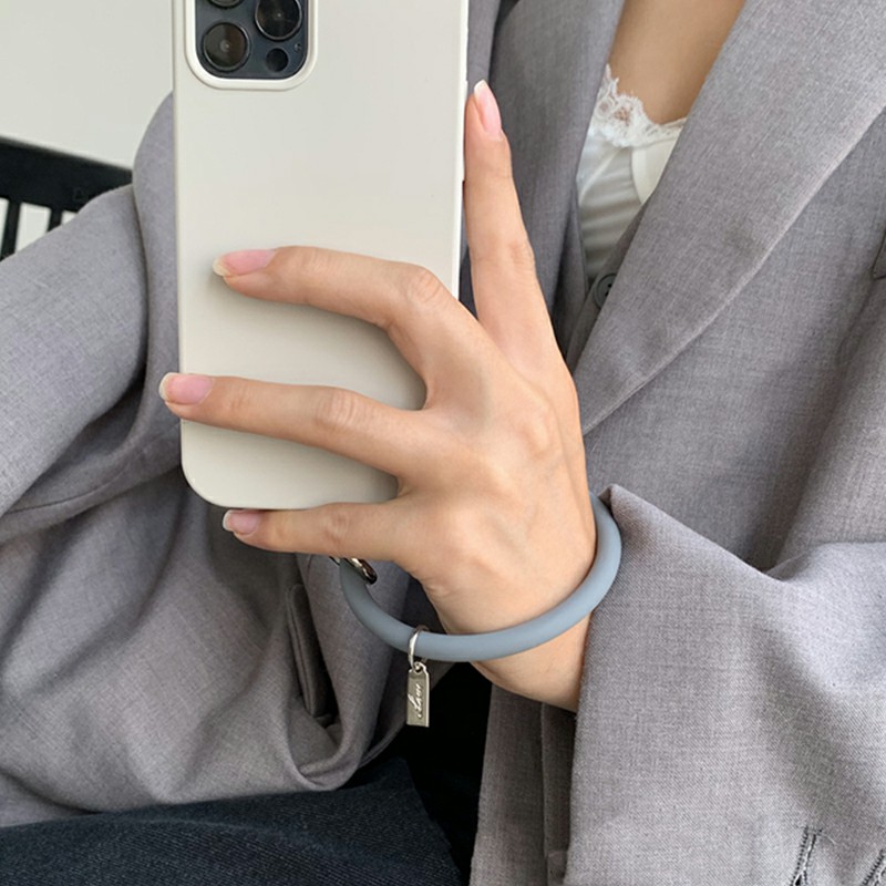 Silicone Bracelet and Pendant for Mobile Phone Shell Car Keychain Key Ring - Grey