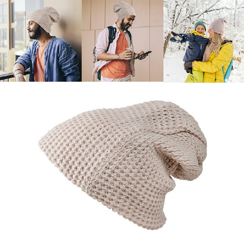 Unisex Warm Oversize Beanie Skull Cap Winter Slouchy Knitted Baggy Hat - Beige