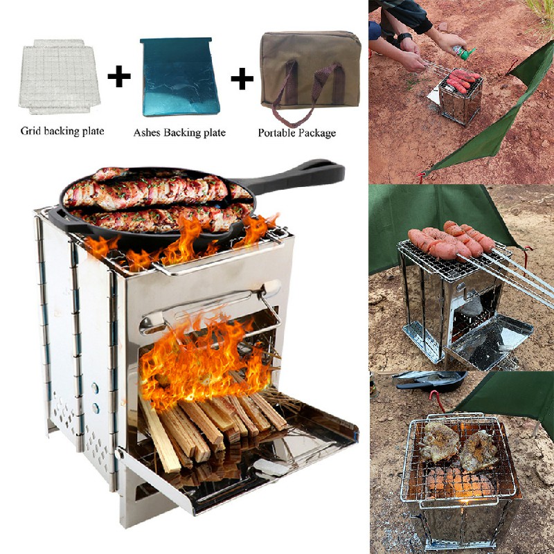 Wood Burning Stove Portable Foldable Grill Outdoor Camping Cookware Barbecue BBQ